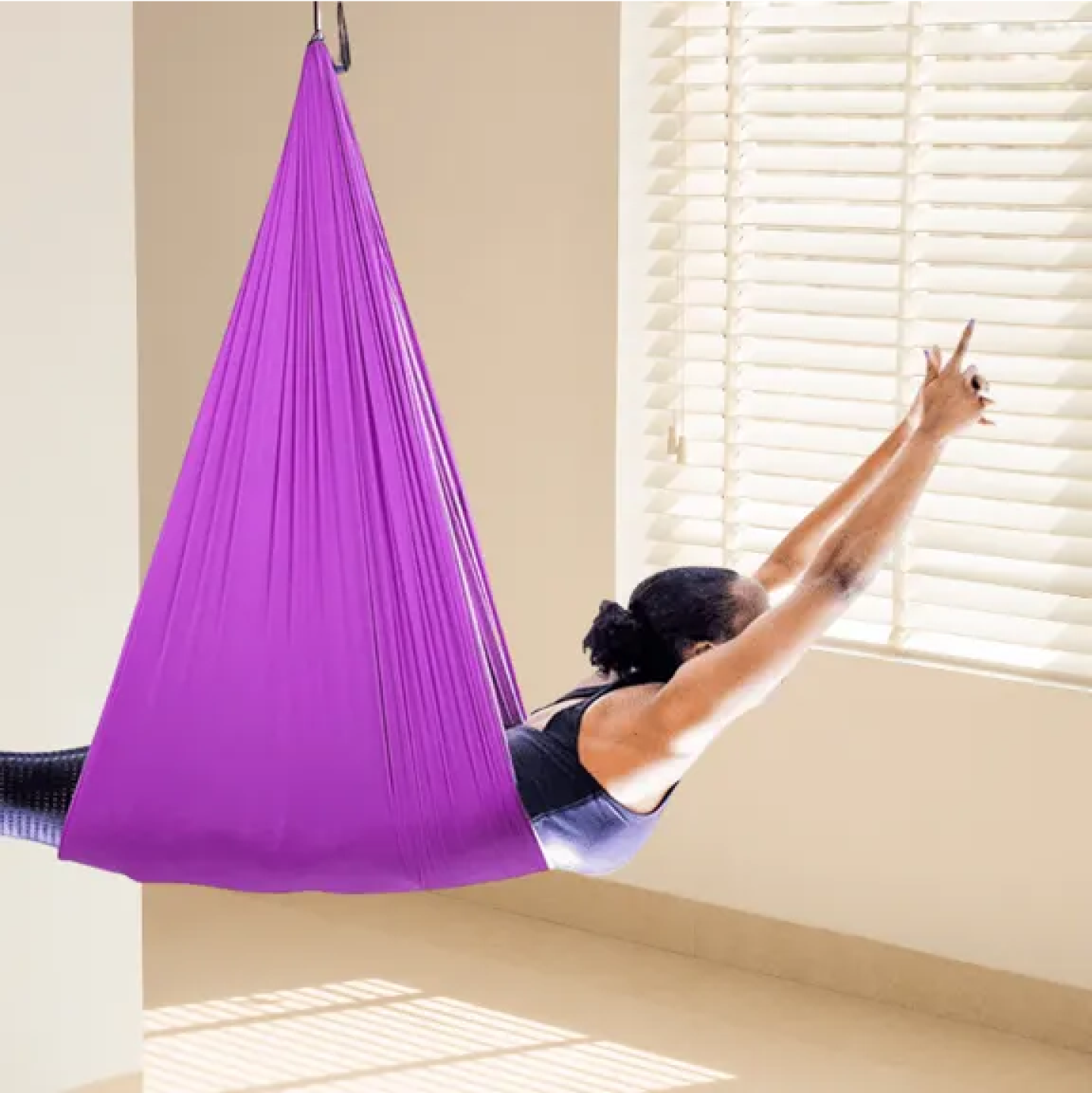 This swing wraps your body in soft, stretchable nylon to create a cocoon-like feeling — similar to a weighted blanket but better. The subtle rocking and compression help reset your sensory system, making it easier to focus, rest, or sleep.